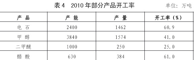 增長(zhǎng),過(guò)剩態(tài)勢(shì)日趨嚴(yán)峻。2010年部分產(chǎn)品開工率見表4。