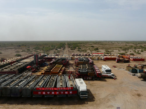 7月6日夜,中原油田井下特種作業(yè)處經(jīng)過14小時奮戰(zhàn),圓滿完成中石化塔河油田TH12312井超大型酸化壓裂施工。本次施工為目前國內最大規(guī)模酸壓施工,共動用主壓車20臺、儀表車3臺、輔助車輛60余臺及儲液罐130具,注入地層壓裂液6008.5立方米,施工最高壓力94.3兆帕,最高排量8.2立方米/分。該井酸壓成功,對進一步完善碳酸鹽巖酸壓改造工藝技術、加快西北油田開發(fā)力度具有重要意義。