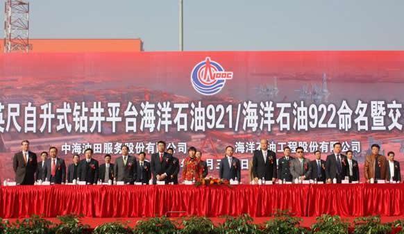 中海油服CEO兼總裁李勇在交船儀式上表示:“2艘200英尺自升式鉆井平臺的順利交付,使公司鉆井平臺作業(yè)水深分布更加多樣化,進(jìn)一步增強(qiáng)了中海油服鉆井裝備的能力,提升了公司的競爭力。希望各方面繼續(xù)緊密協(xié)作,為在建的‘海洋石油 923’、‘海洋石油924’的交付作出新的貢獻(xiàn)。”