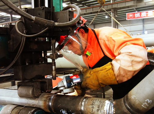 員工精心打磨焊接面,確保焊接質(zhì)量。 |