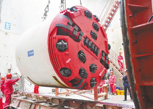 3月19日10時(shí),在管道局四公司甬臺(tái)溫管道甌江盾構(gòu)現(xiàn)場(chǎng),直徑3.1米的M659盾構(gòu)機(jī)吊裝下井。