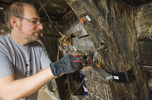 瓦薩博物館的工程師Anders Ahlgren表示:“評估結果證明我們的方向正確無誤,現(xiàn)在我們將繼續(xù)進行下一步的螺栓更換工作。此前,我們曾擔心無法緊固船體或者螺栓會擠壓船體,現(xiàn)在這些顧慮終于可以打消了。通過與山特維克合作,我們成功地解決了平衡問題,找到了螺栓可能實現(xiàn)的最小壓力,完好無損地聯(lián)結船體。”