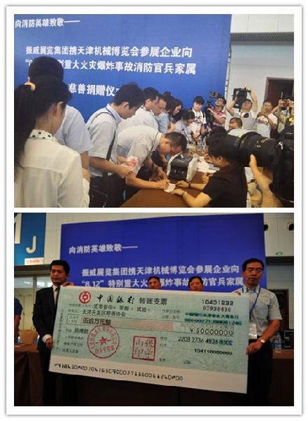 在展會閉幕當天(8月21日),振威攜參展的知名展商,為遇難消防官兵的家屬舉行了個現(xiàn)場募捐活動。開發(fā)區(qū)、市內的相關領導也對此表示高度的支持。天津市商委,天津市會展研究會,濱海新區(qū)慈善總會領導均親臨近現(xiàn)場。大族激光科技股份有限公司,臺灣普慧企業(yè)股份有限公司上海普盈貿易有限公司等企業(yè)積極捐款。相應的款項將由天津公證處現(xiàn)場公證,并全部交由天津開發(fā)區(qū)慈善協(xié)會進行后續(xù)妥善安排。