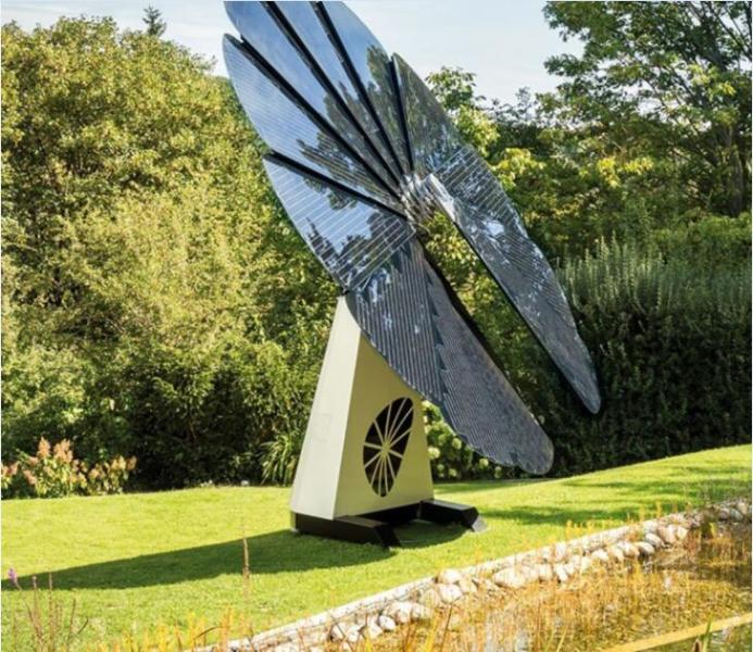 Smartflower是單一的整合系統(tǒng),直接放置在光照充足的戶外,螺栓固定在地面上,它的形狀像太陽花,工作方式也是模仿太陽花,能夠會自動同步時間,確保太陽能電池板方向時刻跟隨太陽轉(zhuǎn)動。