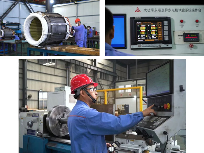 十余年來(lái),公司產(chǎn)品研發(fā)投入近2.8億元,并與高校、研究單位及大型國(guó)有企業(yè)等建立長(zhǎng)期合作關(guān)系。經(jīng)過(guò)10多年的技術(shù)積累,掌握了大量一手的設(shè)計(jì)、制造、試驗(yàn)、使用數(shù)據(jù)。公司目前已形成年產(chǎn)200萬(wàn)千瓦以上超高效永磁同步電動(dòng)機(jī)的生產(chǎn)能力,具備生產(chǎn)高低壓永磁電機(jī)關(guān)鍵工序的全部設(shè)備條件。公司試驗(yàn)中心可以完成380-1140V、1000kW以下低壓永磁電機(jī)做全性能型式試驗(yàn);3.3-10 kV、8000kW以下永磁高壓電機(jī)做全性能型式試驗(yàn)。產(chǎn)品已覆蓋高壓、低壓、工頻、變頻、防爆、工頻防爆、直驅(qū)、防爆直驅(qū)、變頻一體機(jī)、電動(dòng)滾筒等近2000個(gè)規(guī)格型號(hào)。