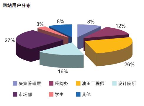 網(wǎng)站訪問人群以石油石化行業(yè)的高層管理者、決策者、設(shè)計(jì)研究人員、油田工程師、物資采購(gòu)及石油裝備貿(mào)易人員為重點(diǎn)對(duì)象,用戶遍布全國(guó)各大油田、物資采購(gòu)中心、工程公司、石化公司、科研院所及裝備制造公司。